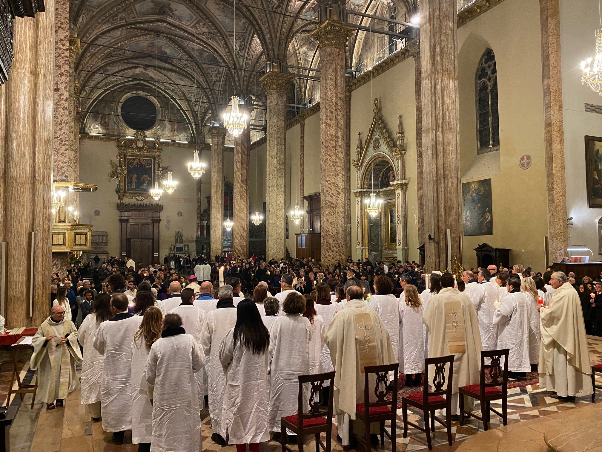 “Grazie a Sofia, Omar, Kamel, Eleonora, Henok e Milad: la loro scelta di ricevere il battesimo per vivere da cristiani diventa un forte richiamo per noi, che il battesimo l’abbiamo ricevuto tanti anni fa e forse l’abbiamo conservato in naftalina, come succede con certe tovaglie, talmente belle che finiscono per restare in un cassettone, inutilizzate, sempre in attesa dell’occasione buona… Da questi giovani ci viene un salutare scossone a far nostra un’esistenza pasquale, che profuma per ogni gesto d’amore, di compassione, di solidarietà, di servizio, di preghiera, di perdono e di tenerezza di cui la sappiamo arricchire”. Così l’arcivescovo Ivan Maffeis a conclusione dell’omelia, intitolata “Un battesimo senza naftalina” (testo integrale al link: https://diocesi.perugia.it/wd-document/8-aprile-2023-veglia-pasquale/), pronunciata alla Veglia pasquale, l’8 aprile, nella cattedrale di San Lorenzo di Perugia, dove per le sue mani hanno ricevuto i sacramenti dell’iniziazione cristiana sei giovani al termine del catecumenato.