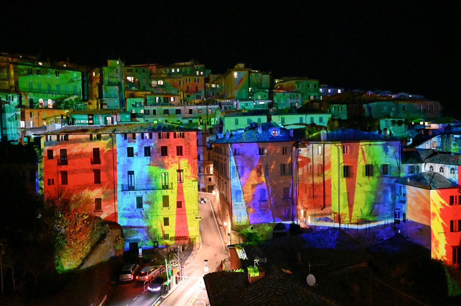 "L'accensione delle luminarie d'artista di Mimmo Paladino segna il culmine di un percorso iniziato con il telo per la facciata di Palazzo Baldeschi e proseguito con la grande mostra Antologica ospitata dalla Galleria Nazionale dell'Umbria.
