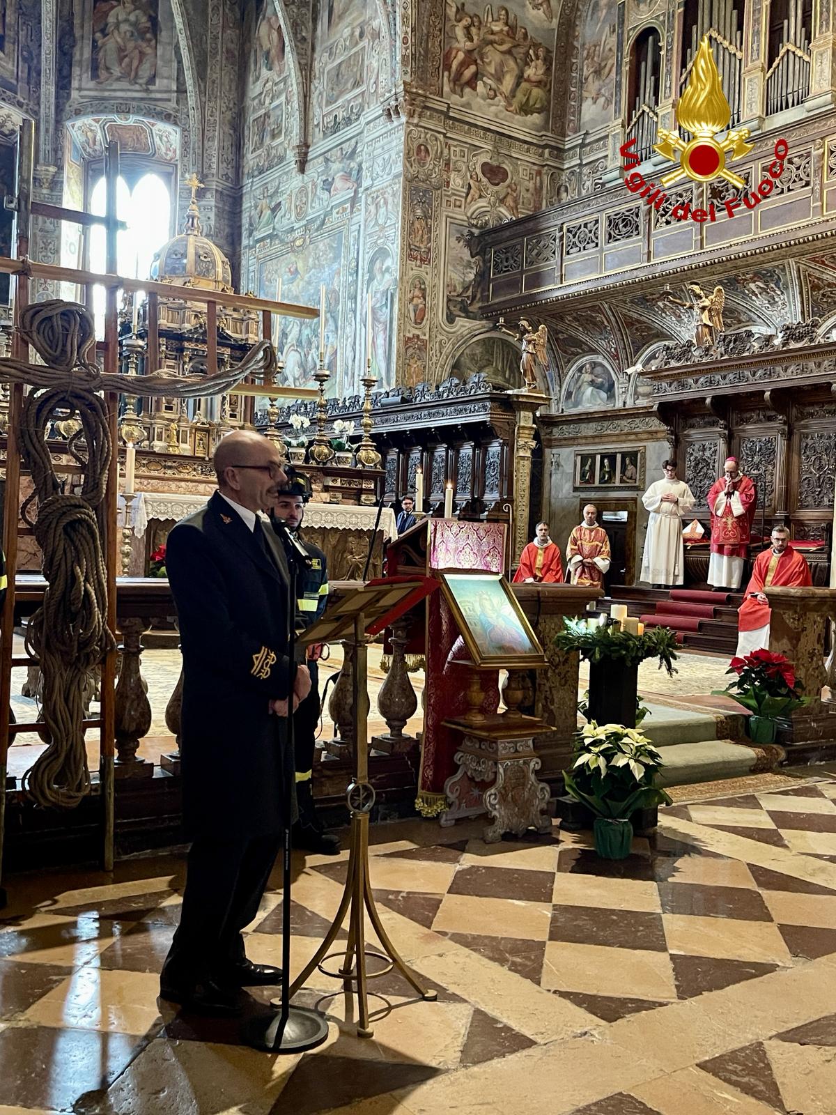Al termine della celebrazione, il Direttore Regionale ha rivolto il suo saluto alle istituzioni presenti, ringraziando in particolare l’Arcivescovo Maffeis per la guida spirituale offerta in un momento particolarmente significativo per l’intera comunità del Corpo Nazionale. Ha inoltre richiamato i valori di coraggio, dedizione, fede e servizio che caratterizzano la figura di Santa Barbara, che i Vigili del fuoco invocano nei momenti di pericolo come protettrice e guida spirituale.
