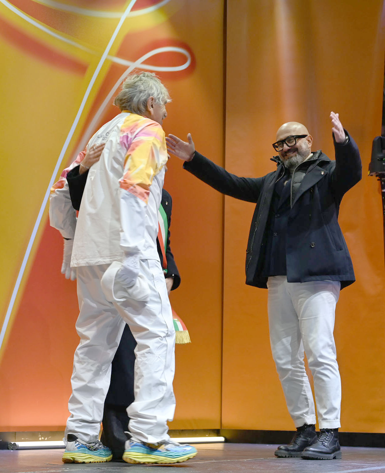 Spazio anche alle eccellenze sportive delle società cittadine, dall'atletica Arcs Cus Perugia al judo Filmkam, dal karate al jujitsu, fino alla lotta, con un riconoscimento corale all'impegno e ai risultati degli atleti perugini. All'arrivo della fiamma portata da Boranga che ha dichiarato che Perugia ha fatto la storia, il saluto alla piazza anche dal Sottosegretario Emanuele Prisco, il Prefetto, Francesco Zito e il Questore di Perugia, Dario Sallustio.