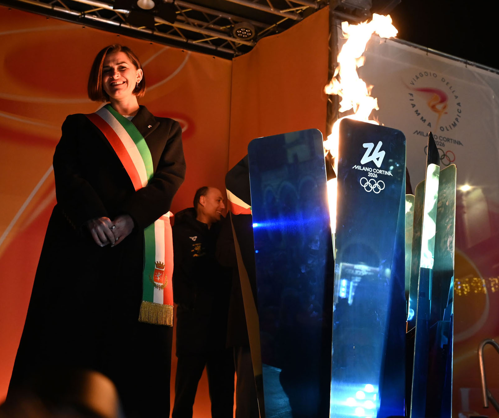 "Accogliere questo simbolo potentissimo in una piazza così viva è un'emozione straordinaria. La Fiamma porta con sé valori universali: la competizione sana, il rispetto dell'avversario, la grinta dei nostri giovani.