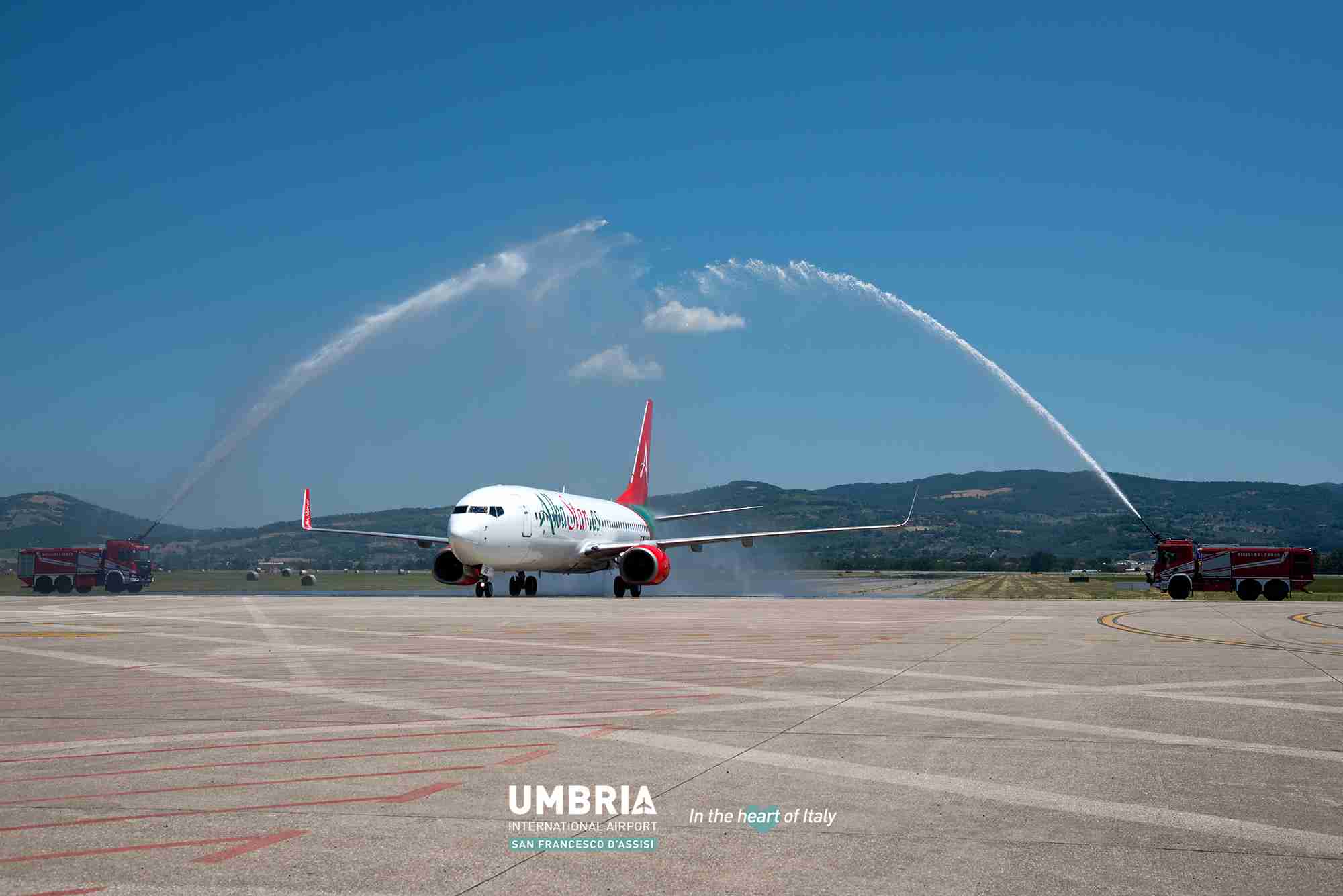 (UNWEB) Perugia, – Un water cannon salute all’Aeroporto di Perugia inaugura il nuovo collegamento diretto per Lamezia Terme di Albastar, che è programmato ogni martedì e giovedì, per tutta la stagione Iata estiva.